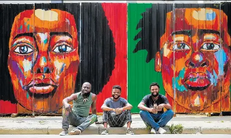 Shambuya Wetu (Congo), Paulo Chavonga (Angola) e Israël Lavi (Congo) em frente a obra no bairro de Pinheiros: acolhidos pela ONG Estou Refugiado, os artistas participam do projeto Cores do Mundo. Após a boa repercussão na capital, iniciativa deve ser levada a outras cidades paulistas.